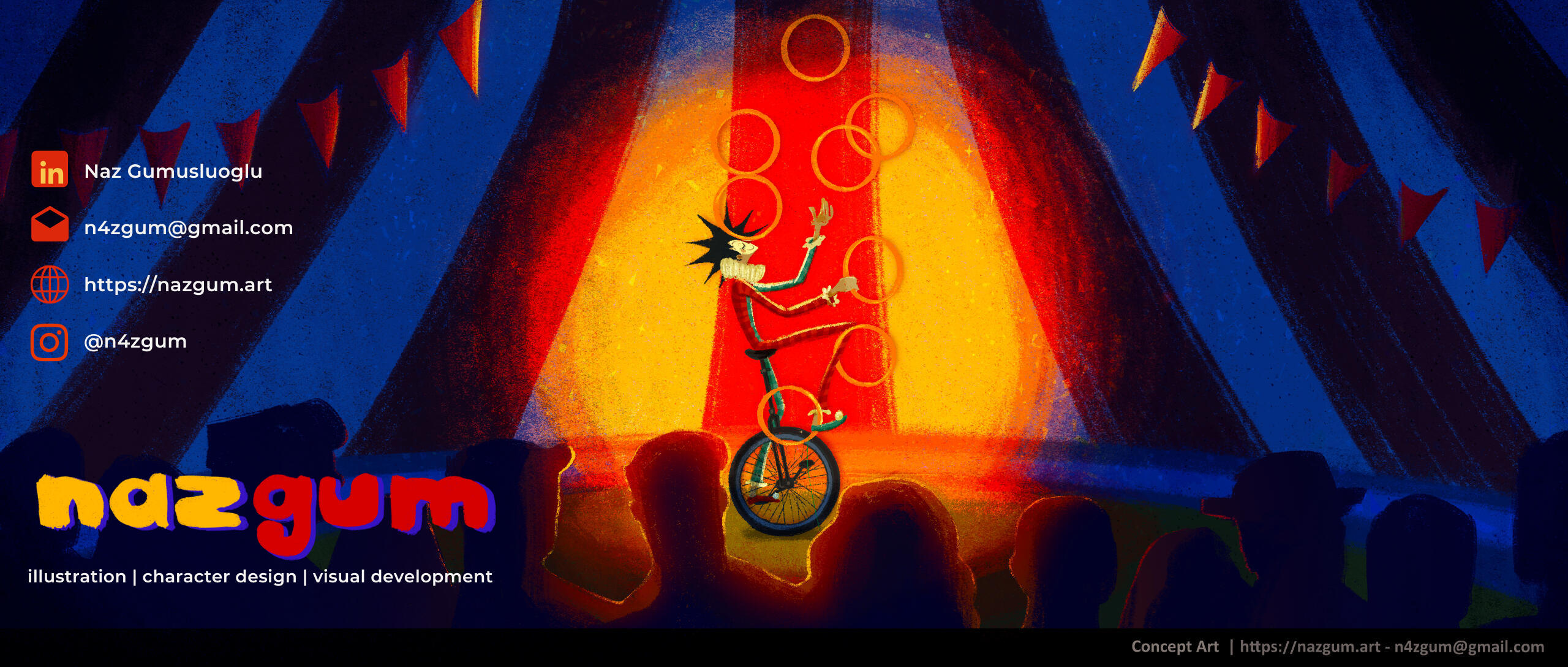 I am UK-based character designer and visual development artist from Istanbul.In my final year at Arts University Bournemouth, I was the lead character designer and producer for the short film 'Sweet Troubles', where I helped shape its visual identity from concept through to completion.Most recently I've been working as a concept artist for the independent short film ‘Knot This!’ creating character designs and contributing to visual development.In my free time, I like to read about circuses, roller skate, and learn new languages.Thanks for stopping by! :o)📧E-mail: [email protected]
